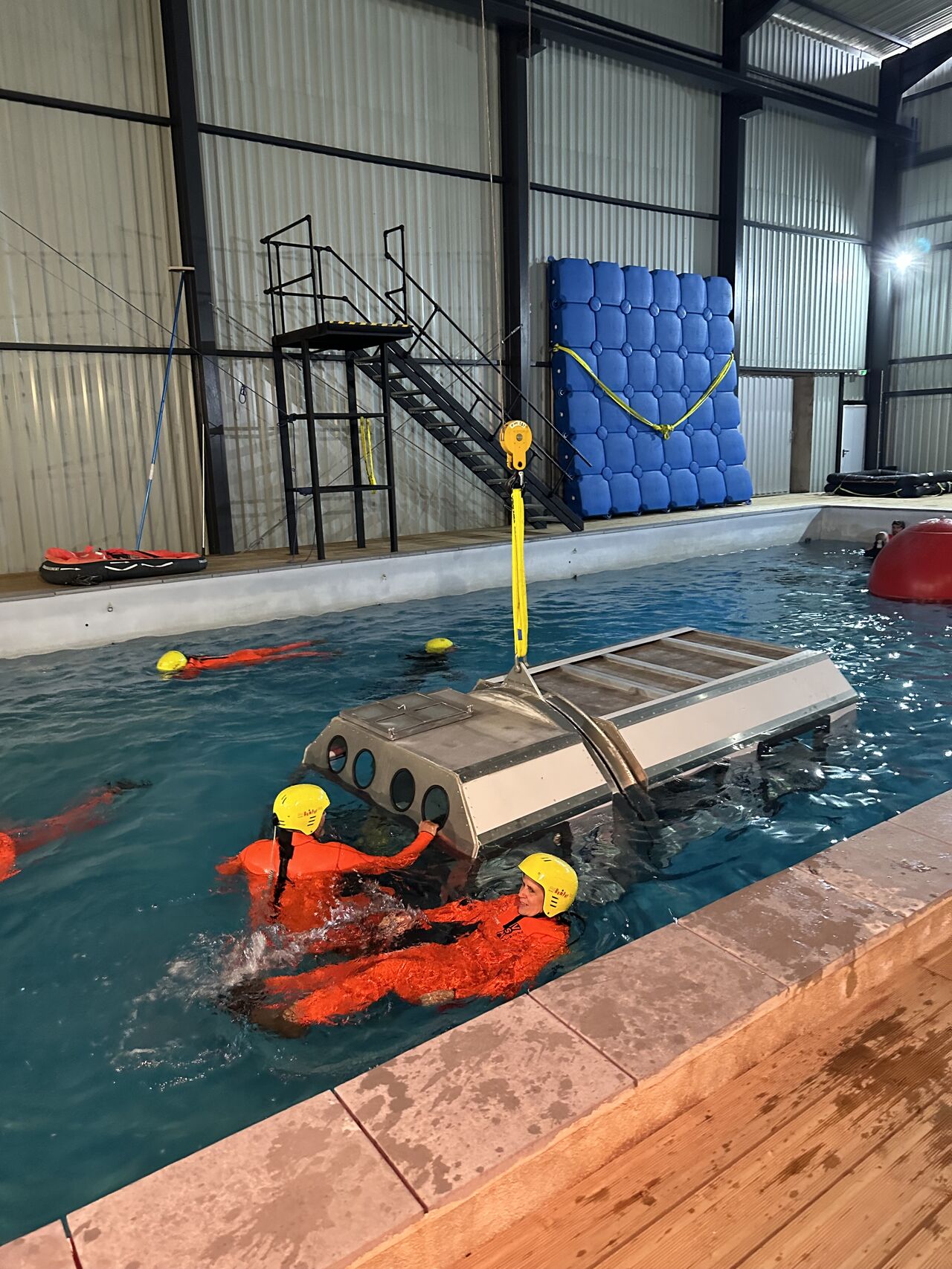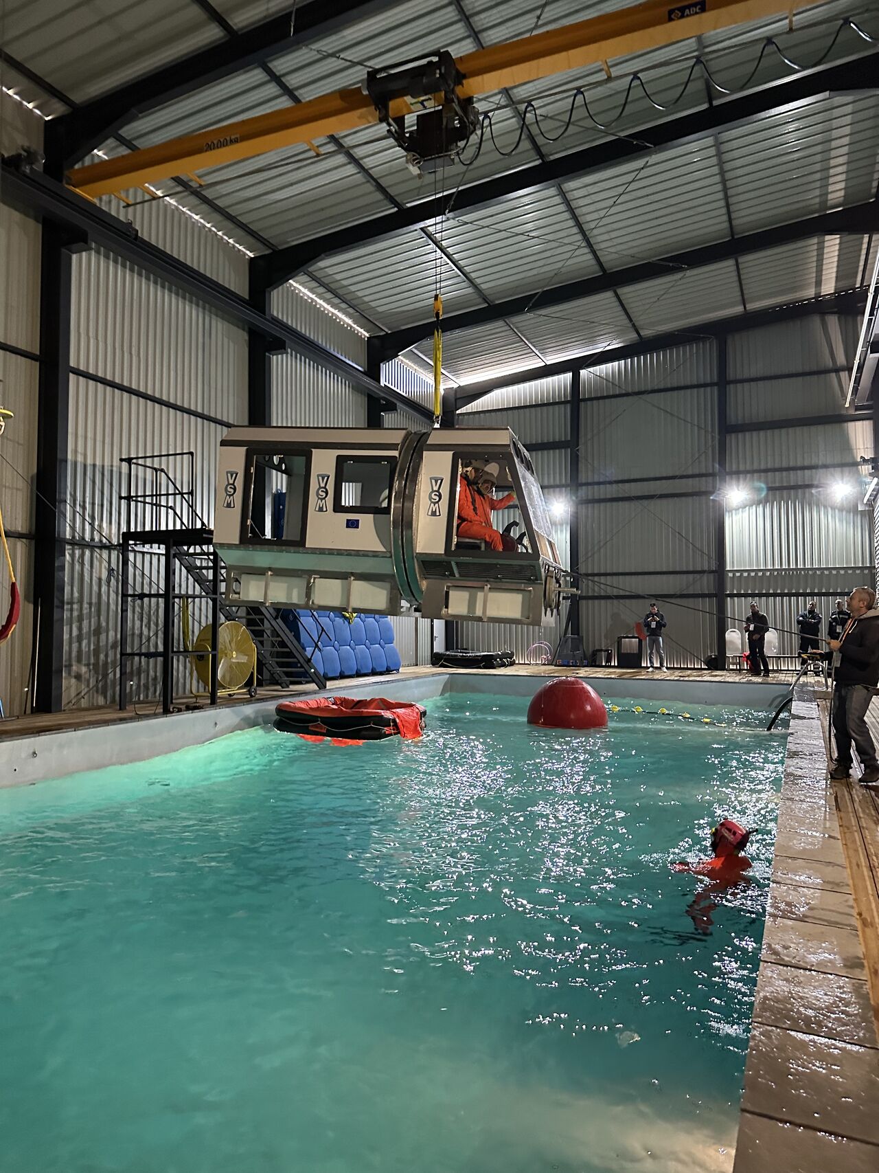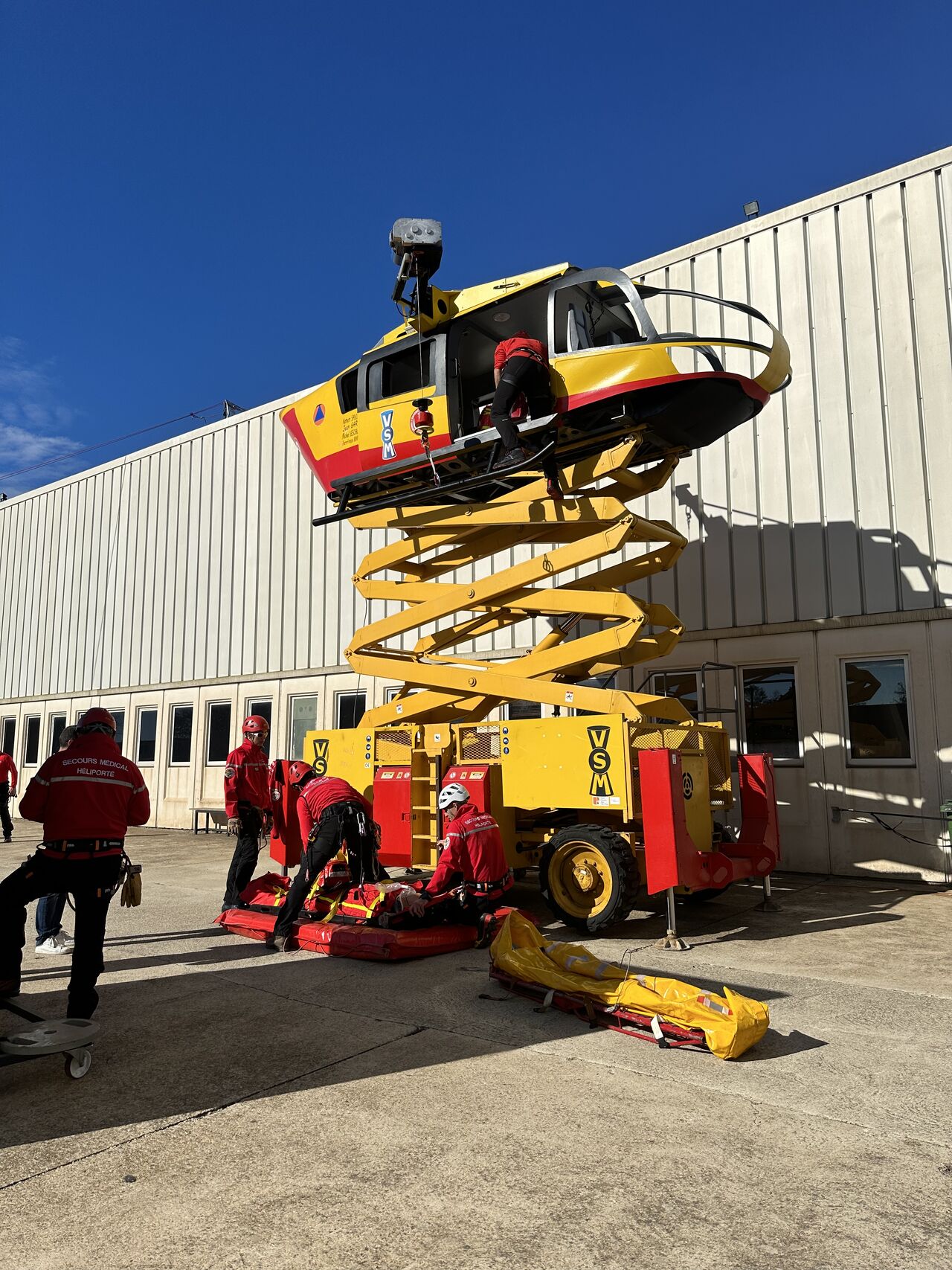 🚁 Durant cette journée, du personnel de la sécurité civile a pu s’entrainer à l’extraction d’une cabine immergée dans la piscine à vague, ainsi qu’au treuillage d’une victime. En parallèle, il était possible de se plonger dans une autre dimension, et de s’essayer à une mission de secourisme en tant que pilote, treuilliste, ou médecin, mais également de s’entrainer au chargement d’un aéronef.